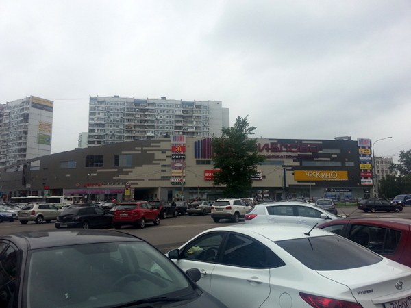 Это чудовищное здание ровно посередине перегораживает дорогу по которой я ходил от метро до дома (за тем домом, что в центре фотографии). И увеличивает её в два раза. Такие бородавки вырастают на дальних станциях метро и постепенно распространяются внутрь. Мы уехали как раз, когда началась стройка. Хорошо, что не застали. Раньше там стояла маленькая деревянная церквушка, в которую выстраивалась очередь за святым в праздники. Мы использовали, её как ориентир, чтобы объяснить, как идти к нам в гости, хотя ближе к метро просто не бывает домов. Церквушку разобрали и пересобрали где-то в другом районе. А я, похоже, начал брюзжать как старик. Ладно, если нужен торговый центр дополнительный, пусть строят. Но почему они такие страшные все?