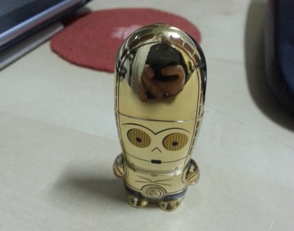 Ира с работы принесла флэшку в виде C3PO. У них там бюро находок после каждого семестра раздаёт кучу ерунды, которую никто не признал за свою. Я поставил её на работе для красоты.